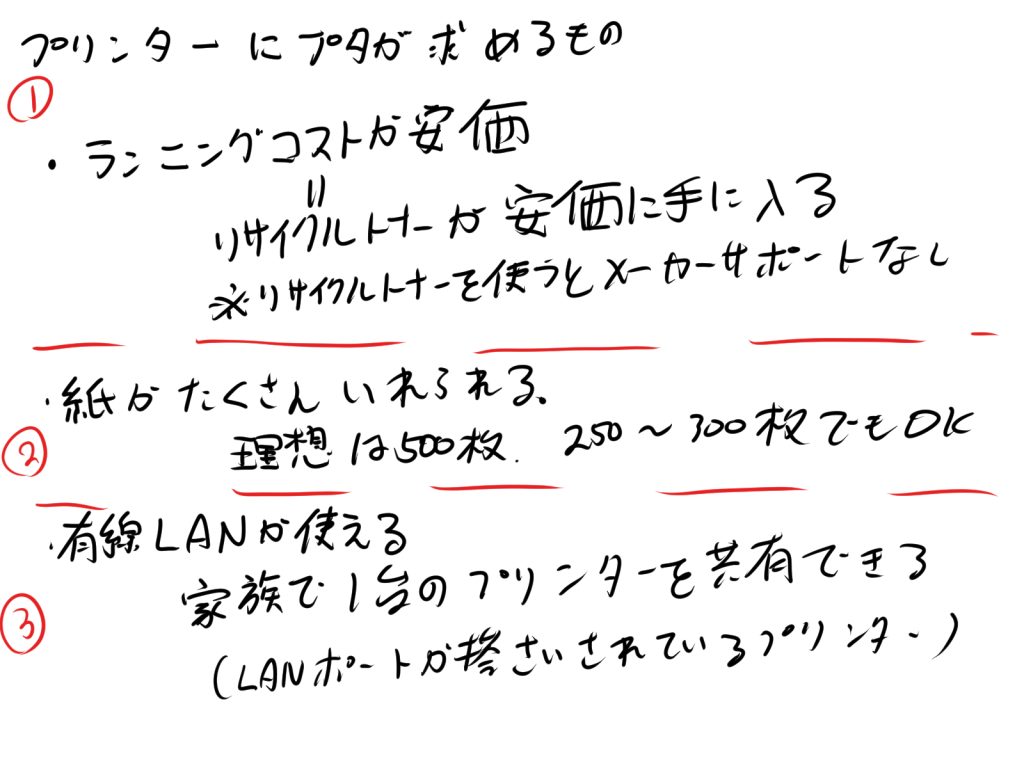 ②用紙が沢山入る。100枚も入らないプリンターがあって、結構めんどくさいのでマストではないけどこれもあったらいいなという感じです。