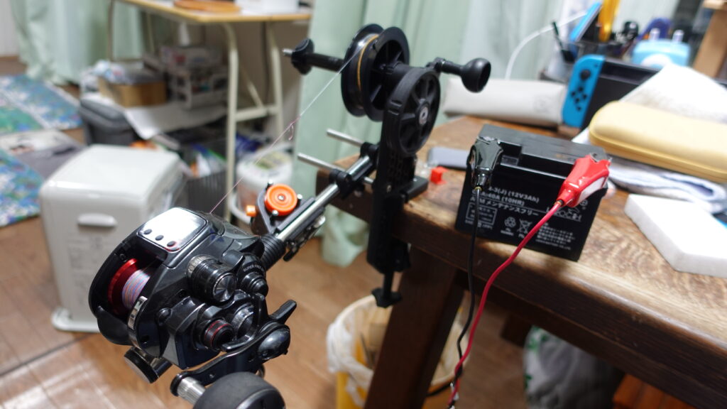 12Vでは電圧不足という人もいますが 12Vでも問題なく力強く巻き取ることができます。試しに糸だし、負荷をかけて巻き取りを1km分くらい繰り返したときのバッテリーの容量は3%も減でした。実際の釣りでは負荷が3倍くらい巻く量がで5~10km分だったとしても余裕でもちそうです。