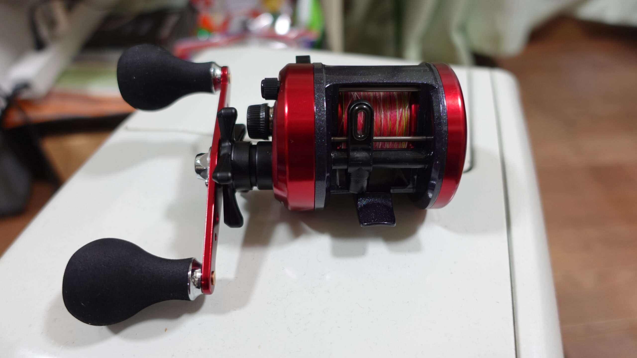 この赤いリールにPEの2号の糸をまいて油をさして再来月に使うよう準備しておきます。いまからタコ釣りが楽しみで去年の釣りあげたタコのサイズは1.8㎏、今年は3㎏くらいの大きなタコをつりあげたいなぁ。。。。いまから解禁になる日がまちどおしい。。。(#^.^#)